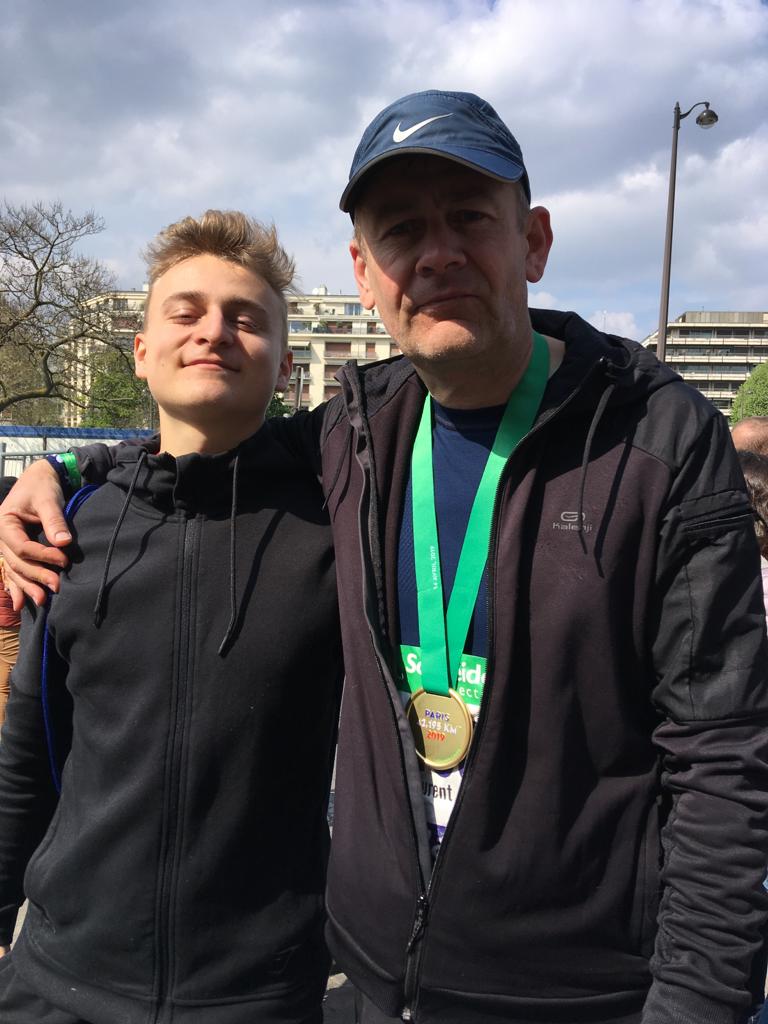 Quand je suis allé voir mon père courir au marathon de Paris en 2019.